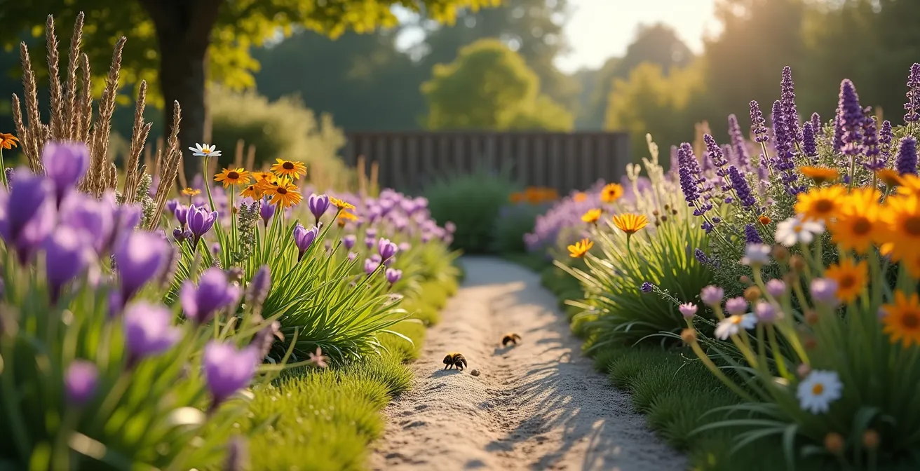 Doch diese gut gemeinten Einzelmaßnahmen sind oft nur ein Tropfen auf den heißen Stein. Was, wenn die wahre Lösung nicht in willkürlichen Pflanzungen, sondern in einem strategischen System liegt? Der Schlüssel zu einem dauerhaft summenden Paradies ist das Konzept des „Trachtfließbands“. Hier geht es nicht darum, den Garten der Natur zu überlassen, sondern ihn intelligent zu gestalten. Es geht darum, ein durchgehendes Nahrungsangebot von den ersten warmen Tagen im März bis zu den letzten Sonnenstrahlen im Oktober zu schaffen und dabei zu beweisen, dass ein ästhetisch ansprechender, gepflegter Garten und ein Hotspot der Artenvielfalt keine Gegensätze sein müssen.